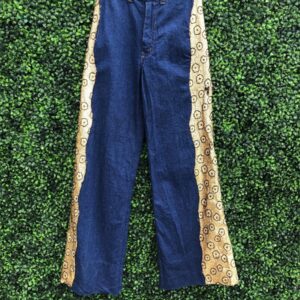 ONE-OF A KIND DENIM BELLBOTTOM JEANS WITH GOLD DAISY SIDING