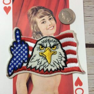EMBROIDERED PATCH – EAGLE ON AMERICAN FLAG GIVING FINGER
