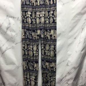 ELEPHANT PRINT FROM INDIA FLOWY PANTS WITH ELASTIC WAIST & CINCHED BOTTOM