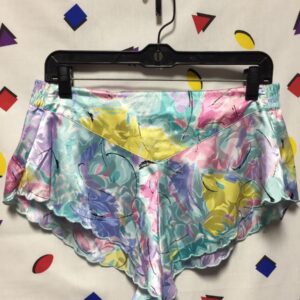 AMAZING 1980S SILKY VINTAGE PASTEL FLORAL PRINT LINGERIE SHORTS