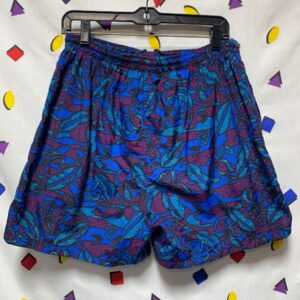 RETRO 90S DARK BLUE FLORAL PRINT NYLON DRAWSTRING WAIST ELASTIC SHORT LENGTH SWIM TRUNKS