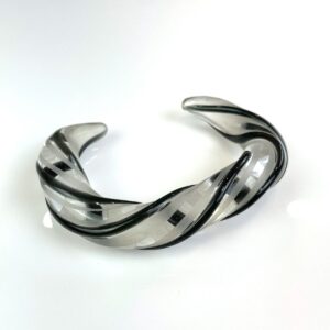 COOL! MODERNIST HAND BLOWN SWIRLED BENT FROSTED GLASS CUFF BRACELET