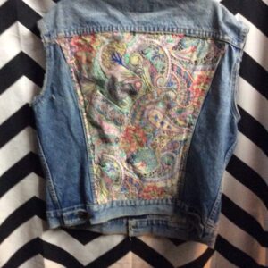 LEVIS DENIM VEST – CUTOFF SLEEVES – PAISLEY PATTERN CHEST & BACK PATCHWORK – PAINTED POCKETS