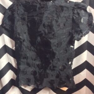 WOMAN’S TOP – SHORT SLEEVES – SHEER – VERTICAL STRIPES W/LEAF PRINT