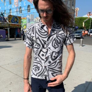 BOLD OUTLINE BUTTON UP 100% COTTON HAWAIIAN SHIRT SMALL FIT