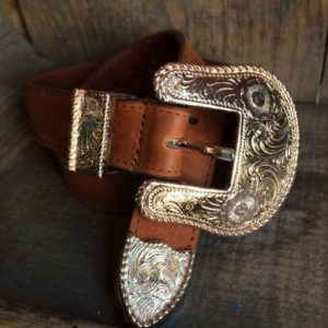SOFT LEATHER BELT W/ WESTERN ORNATE BUCKLE