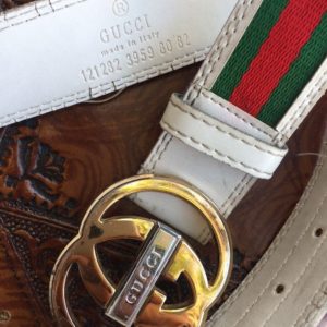 CLASSIC LEATHER & WOVEN RIBBON GUCCI BELT WITH 2 TONE GG BUCKLE – AS IS *DISTRESSED