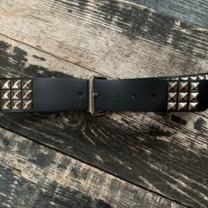 CLASSIC BLACK BELT STUDDED BELT TRIPLE ROW PYRAMID STUDS REMOVABLE ROLLER BUCKLE AND STUD DETAIL ON THE KEEPER | NOS