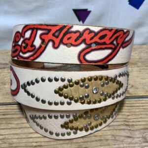 ED HARDY CHRISTIAN AUDIGIER LEATHER BELT HANDMADE DESIGNER CROUCHING TIGER