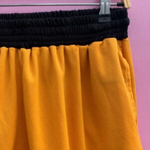 NBA GOLD BASKETBALL SHORTS W/ RED AND BLACK TRIM AND CELTICS PATCH