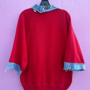 UNUSUAL 1980S REPURPOSED PULLOVER SWEATSHIRT W/ DENIM COLLAR, CUFFS AND POCKETS