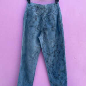 WASHED OUT ALL OVER DAMASK PATTERN COTTON LINEN TROUSER PANTS