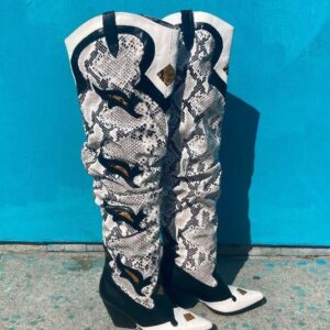 FAUX SNAKESKIN SLOUCHY THIGH HIGH WESTERN BOOTS