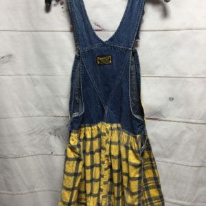 RECONSTRUCTED DENIM & PLAID FLANNEL SKIRT BABY-DOLL STYLE OVERALL DRESS