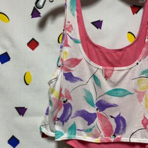 1980S DEADSTOCK JAZZERSIZE STYLE FLORAL WORKOUT BODY SUIT W/ ATTACHED TOP