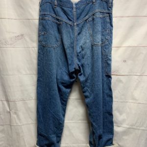 FLANNEL LINED 1960S SEARS BRAND DENIM CARGO STYLE WORK WEAR JEANS WITH COPPER SNAP BUTTON & RIVETS
