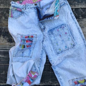 1980S AMAZING DISTRESSED PATCHWORK DENIM ACID WASH JEANS
