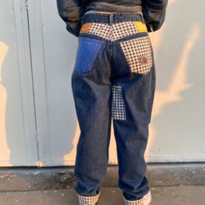 AMAZING USED DENIM PATCHWORK JEANS GINGHAM AND SOLID PRINT