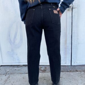 1990S VINTAGE BLACK ACID WASH TAPERED DENIM MOM JEANS