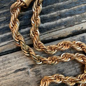 HEAVY 1970S GOLD DOOKIE CHAIN TWISTED ROPE CHAIN CHOKER / NECKLACE TOGGLE CLOSURE AS-IS
