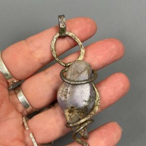925 ORGANIC HAMMERED SILVER WRAPPED PURPLE STONE AGATE PENDANT