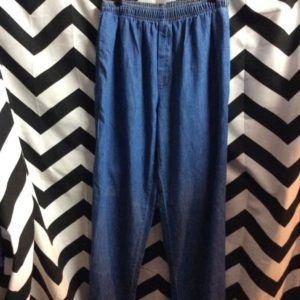 DRAWSTRING ELASTIC WAIST DENIM PANTS W/ ELASTIC ANKLES