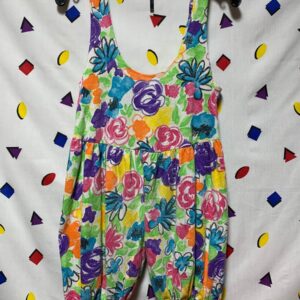 AMAZING FLORAL ROMPER WITH LACE-UP TOP AND LACE TRIMMED BOTTOM