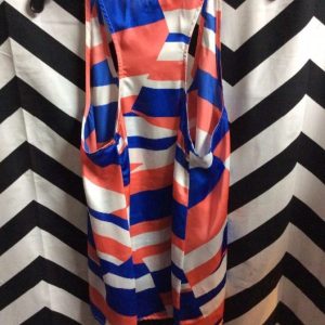 TANK TOP, SHEER BRIGHT COLORED GEOMETRIC PRINT, HIGH LOW HEM