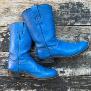VINTAGE 1990S MID CALF BRIGHT BLUE COUNTRY WESTERN COWBOY BOOTS