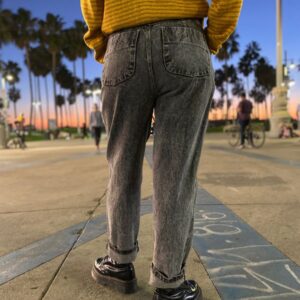 1990S VINTAGE BLACK ACID WASH TAPERED DENIM MOM JEANS