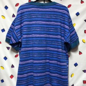 VINTAGE 1990S QUIKSILVER ABSTRACT WAVES HORIZONTAL STRIPED OVERSIZED COTTON T-SHIRT WITH LOGO ON FRONT