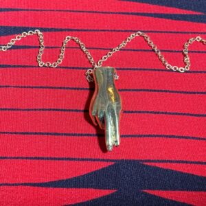 SOLID BRASS 2 FINGERS UP “DON’T CARE” HAND GESTURE NECKLACE