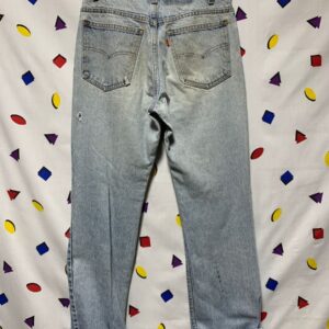 LEVIS DENIM JEANS ZIP FLY ORANGE TAB FRAYED WAIST WASHED LIGHT BLUE DENIM AS-IS