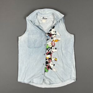 ALOHA HAWAIIAN MICKEY, MINNIE, GOOFY & DONALD SLEEVELESS DENIM BUTTON UP SHIRT