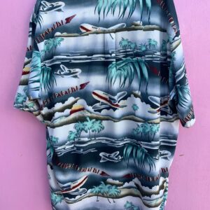 FLIGHT TO PARADISE PLANES OVER ISLAND PRINT HAWAIIAN SHIRT