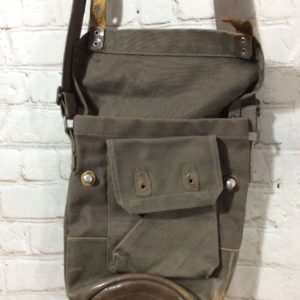 CROSS BODY MILITARY BAG W/ CANVAS & LEATHER DETAIL