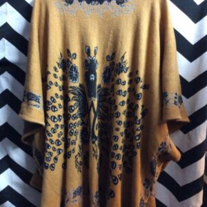 KNIT PONCHO W/LLAMA & SUN PRINT SUPER SOFT W/FRINGE