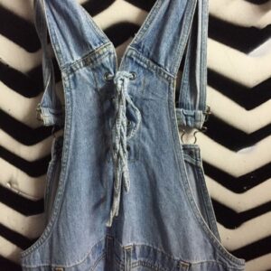 LIGHT DENIM OVERALLS W/LACE-UP BACK