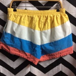SWIM TRUNKS W/COLOR BLOCK STRIPES – EMBROIDERED RAINBOW HAWAII