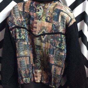 BOMBER JACKET – SPARKLY WOVEN TAPESTRY FABRIC W/VELVET SLEEVES