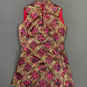 TRULY AMAZING! 1960S HOT PINK 3 PIECE TUNIC, PANTS LAMÉ PRINTED SET WITH BELT