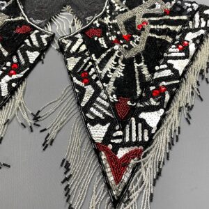 GORGEOUS!!! 1980S-90S GEOMETRIC BEADED & TASSEL SHAWL