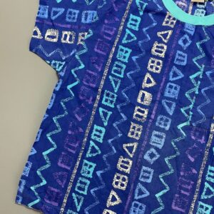 1980S LIGHTWEIGHT BATWING SHORT SLEEVE ZIP UP JACKET AZTEC PRINT COLLAR & HEM ACCENT