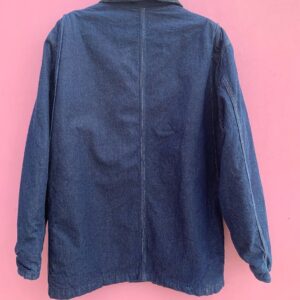 OVERSIZED DARK WASH BUTTON UP CHORE JACKET W/ CORDUROY COLLAR AND BLANKET LINING