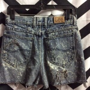 LEE DENIM SHORTS – HIGH WAISTED – ACID WASH – RIPS – BLEACH SPLATTER