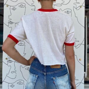 AS IS – SUPER THIN RECONSTRUCTED JACK DANIELS WHISKEY CROPPED RINGER T-SHIRT