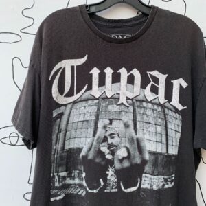 TSHIRT TUPAC BLACK & WHITE MIDDLE FINGER GRAPHIC