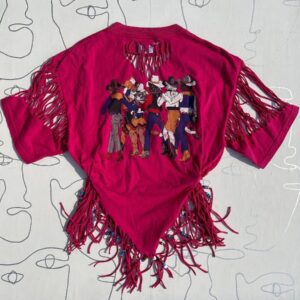 1980S FUN COWBOY CATS GRAPHIC CROPPED & RECONSTRUCTED FRINGE TOP