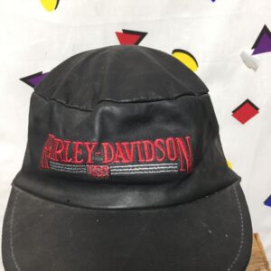 VINTAGE EMBROIDERED LEATHER HARLEY DAVIDSON HAT BUCKLE CLOSURE