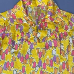 ADORABLE! 1960S PASTEL TULIP PRINT SILKY BLOUSE